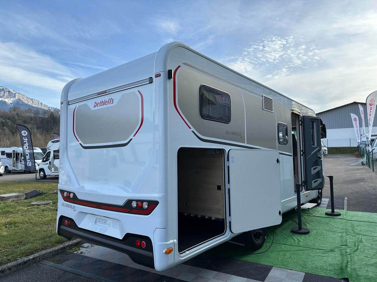 Réputé pour la fiabilité et l’isolation de ses véhicules, Dethleffs conçoit également des camping-cars dotés de très grands espaces intérieurs. L’intégral Dethleffs Globebus I6 est aménagé avec 2 lits jumeaux sur soute ainsi qu’un lit de pavillon avant.