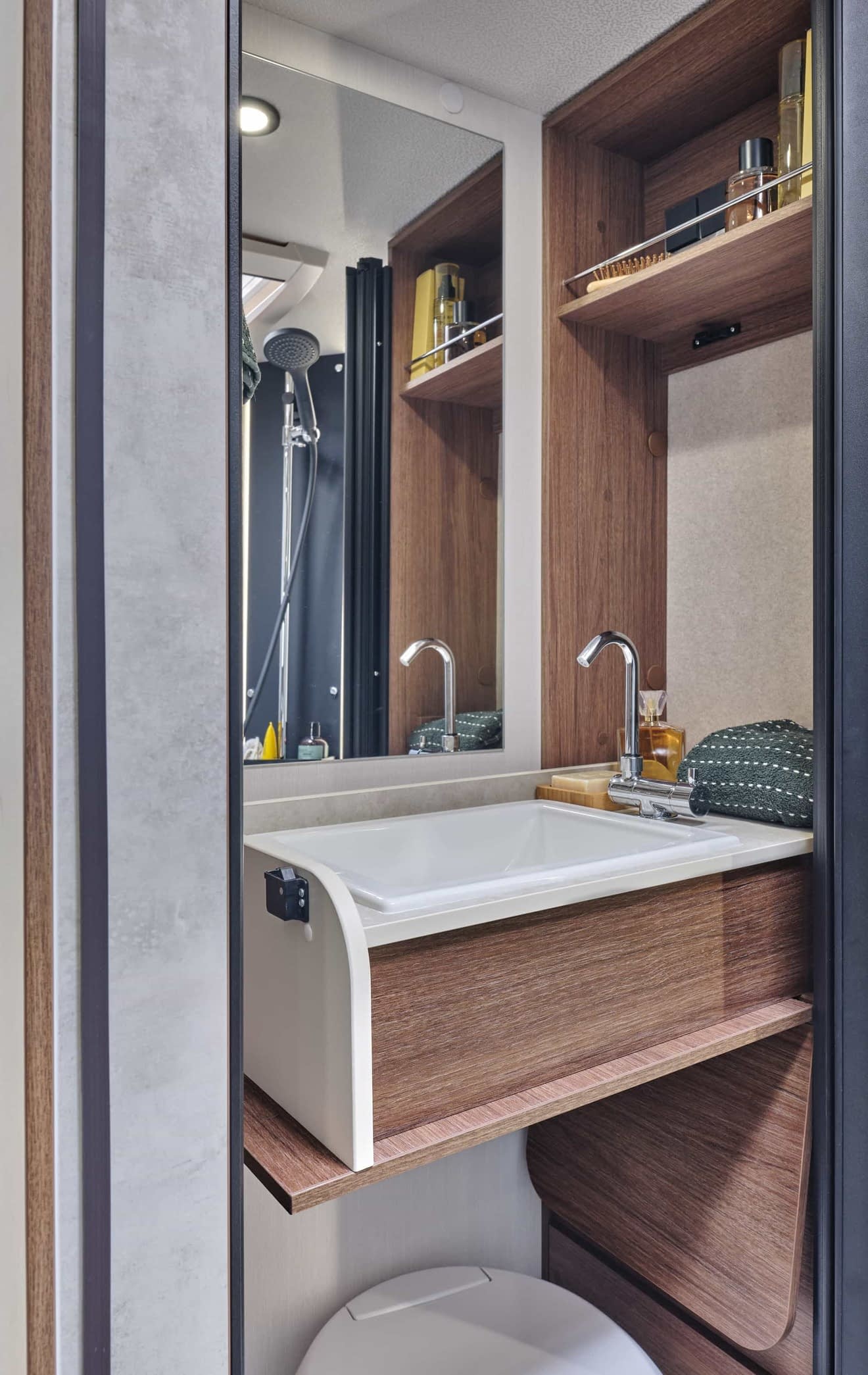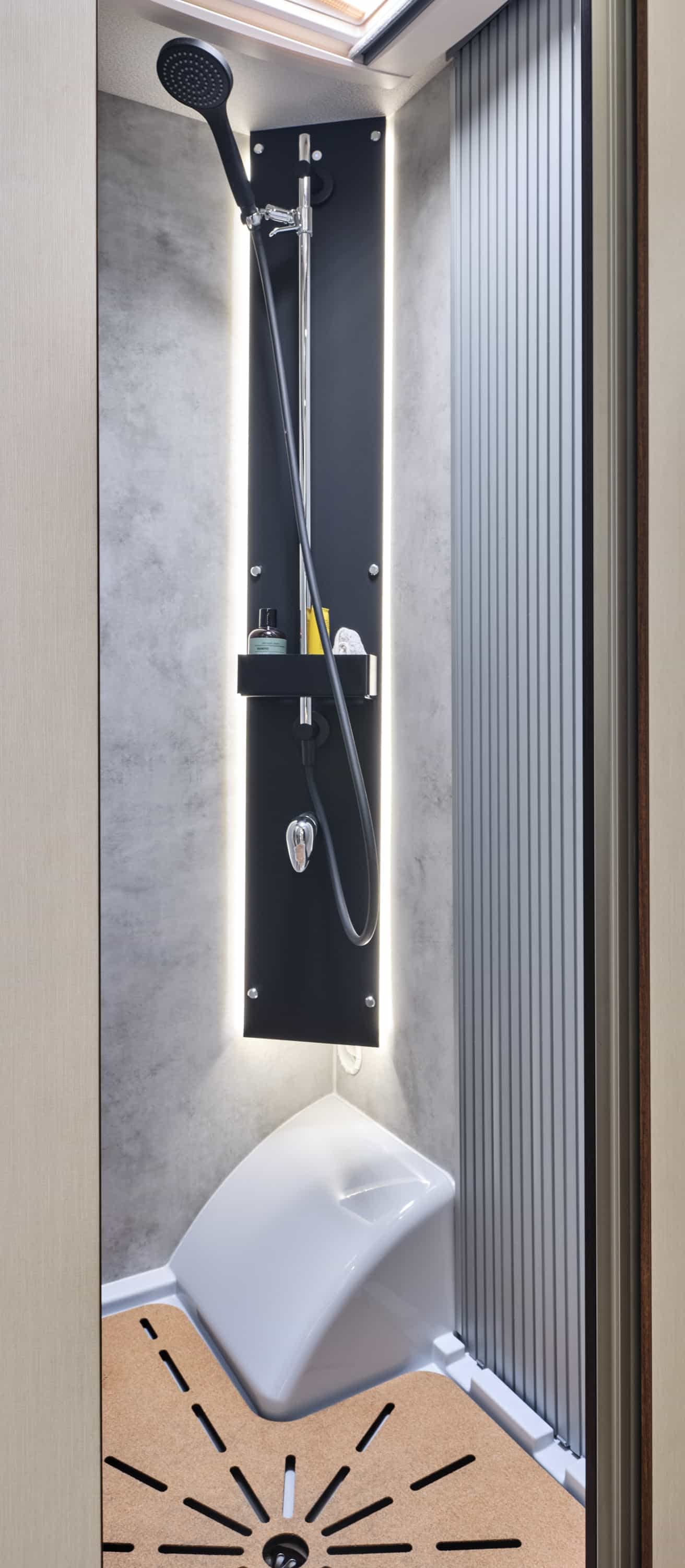 La disposition intérieure libère de grands espaces de circulation à l’intérieur du véhicule : un lit à la française, une salle d’eau spacieuse avec une douche séparée, une cuisine longitudinale.