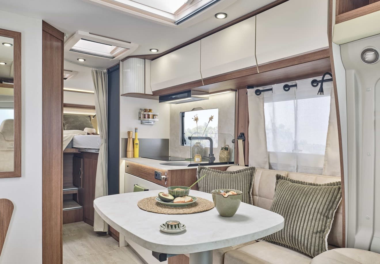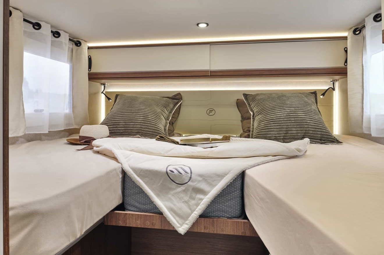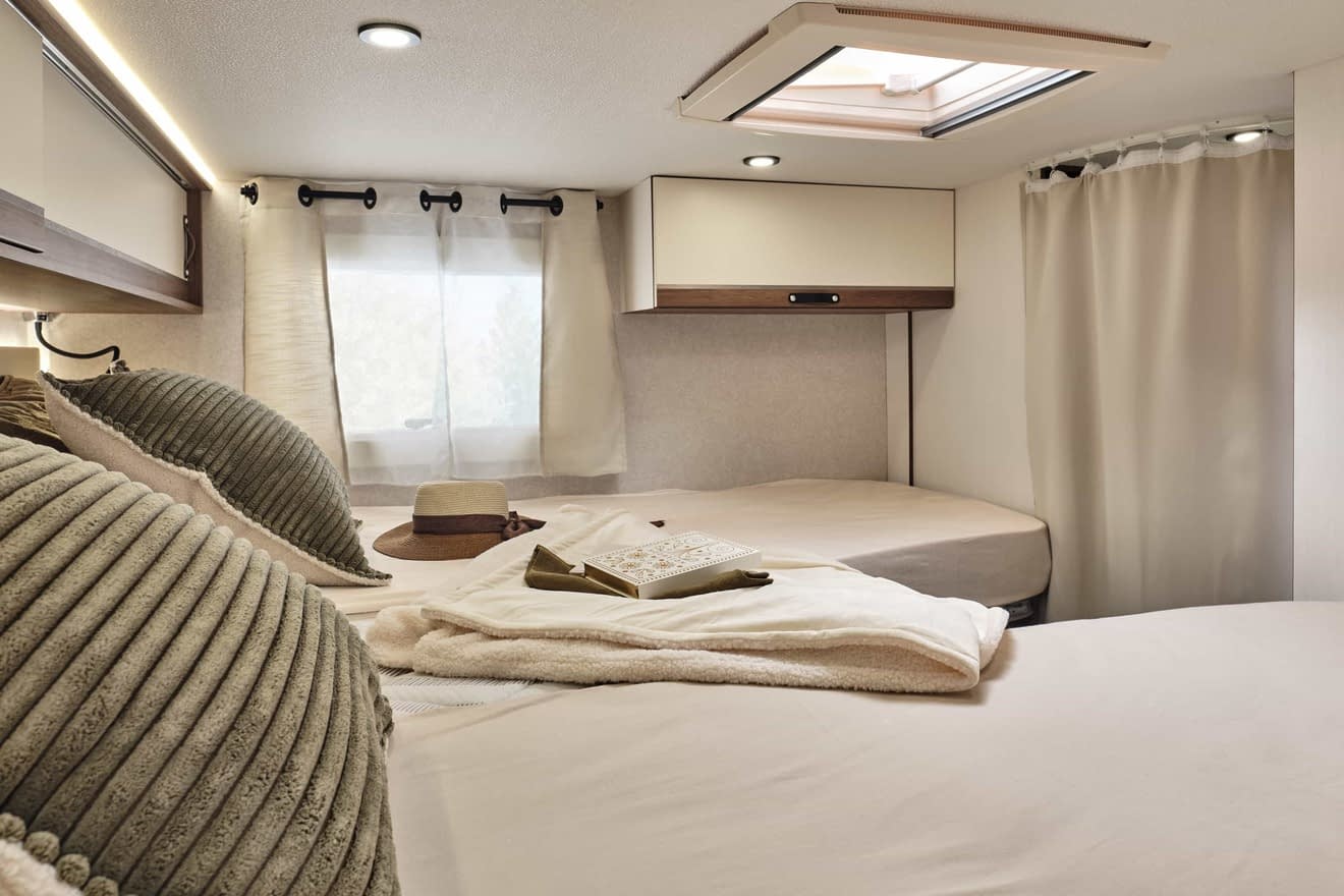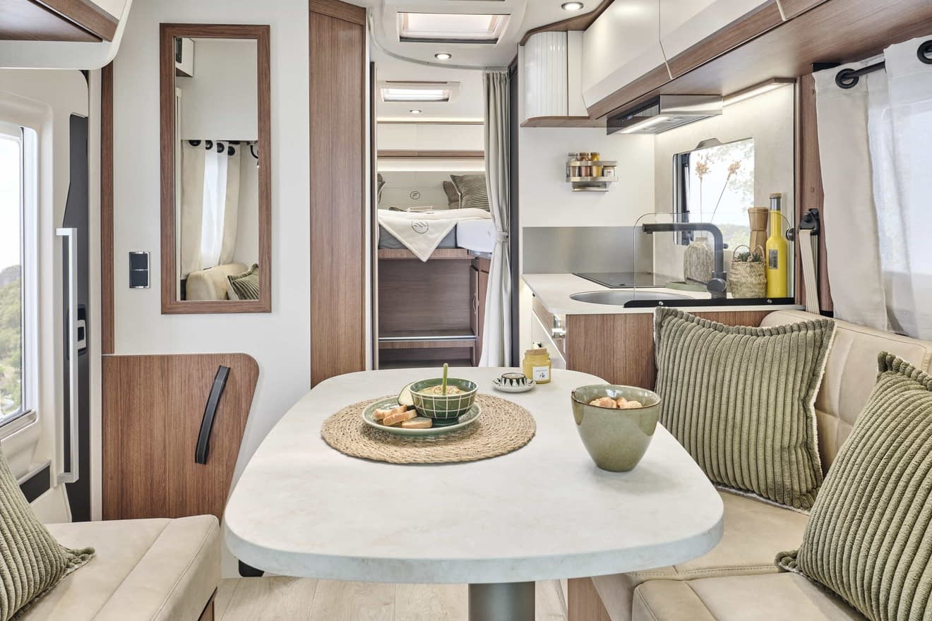Ce profilé dispose d’un salon avec deux banquettes face à face, faisant de ce camping car l’un des plus spacieux du marché.