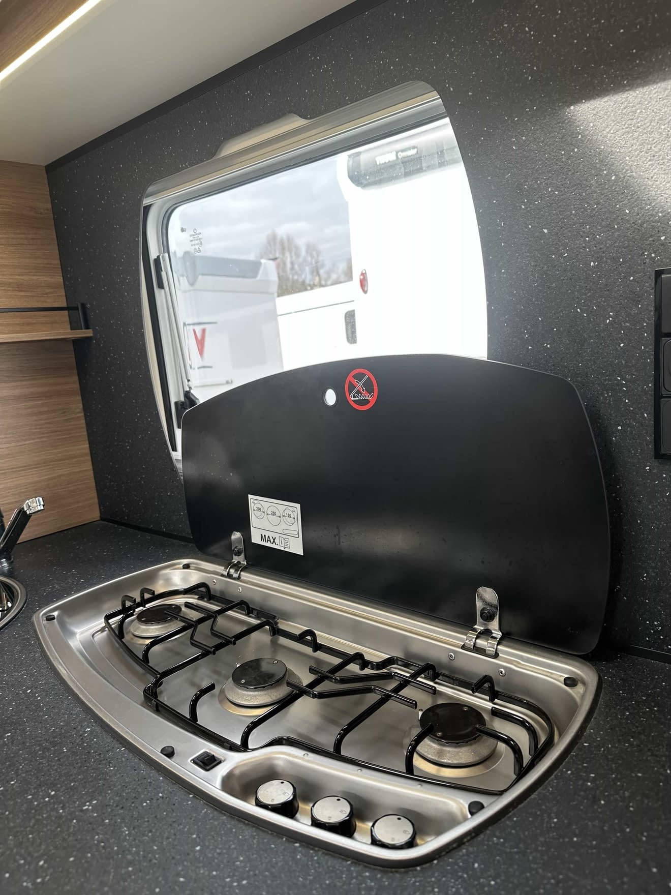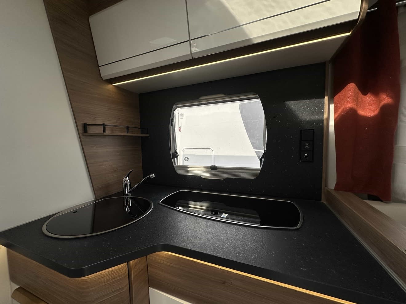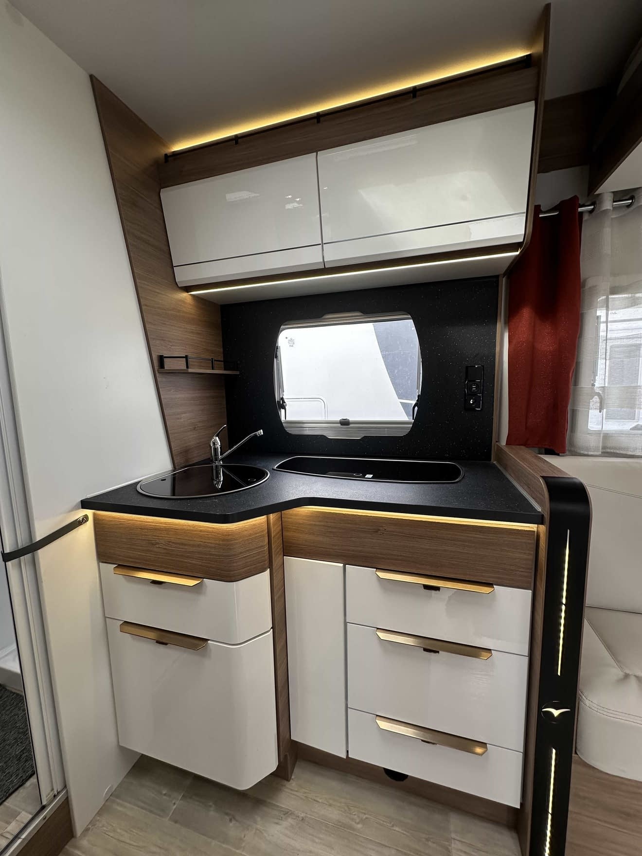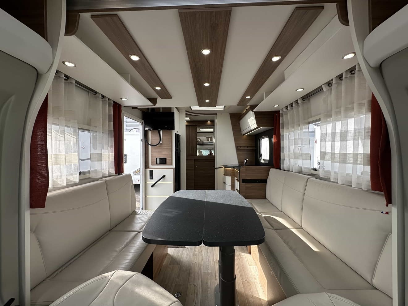 Implantation orientée pour les personnes cherchant un maximum d’espace et de confort, il offre un grand salon avec banquettes longitudinales, une cuisine longitudinale, un grand réfrigérateur avec recherche d’énergies automatique AES.