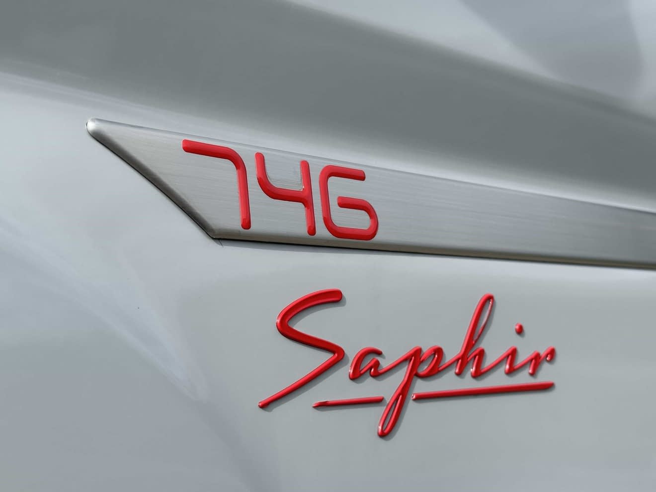 – Toit panoramique SKYVIEW – Peinture carrosserie Expedition Grey – Ambiance Eclipse – Sellerie DAKOTA – Broderie cible – Marquage carrosserie « SAPHIR » – TPMS (contrôle de pression des pneus automatique), – Frein de stationnement électrique – Pare chocs avant couleur carrosserie + skid plate noire + feux anti-brouillard – Renfort pneumatique suspension essieu arrière sans compresseur (double manomètre + valves) – Couchage dinette 1 place – Panneau solaire 150W (monté) – Déco SAPHIR – TRUMA Combi 4 DIESEL avec kit altitude et commande de chauffage CP PLUS (implique 2e batterie cellule) – Prise gaz extérieure – PACK SMART : • Jantes 16’’ en alliage léger bi-ton • Volant confort • Habillage gris sur aérateurs – PACK LED ASSIST : • Feux avant 100% LED • Allumage automatique des feux et des essuie-glaces