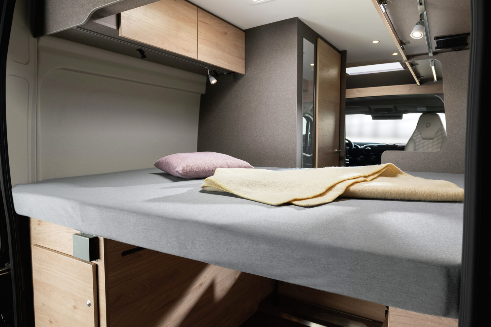 🔹 Lit double transversal confortable, avec grand espace de rangement dessous.