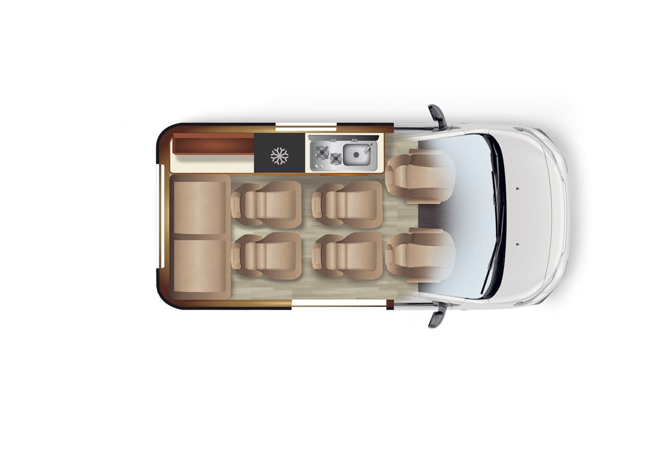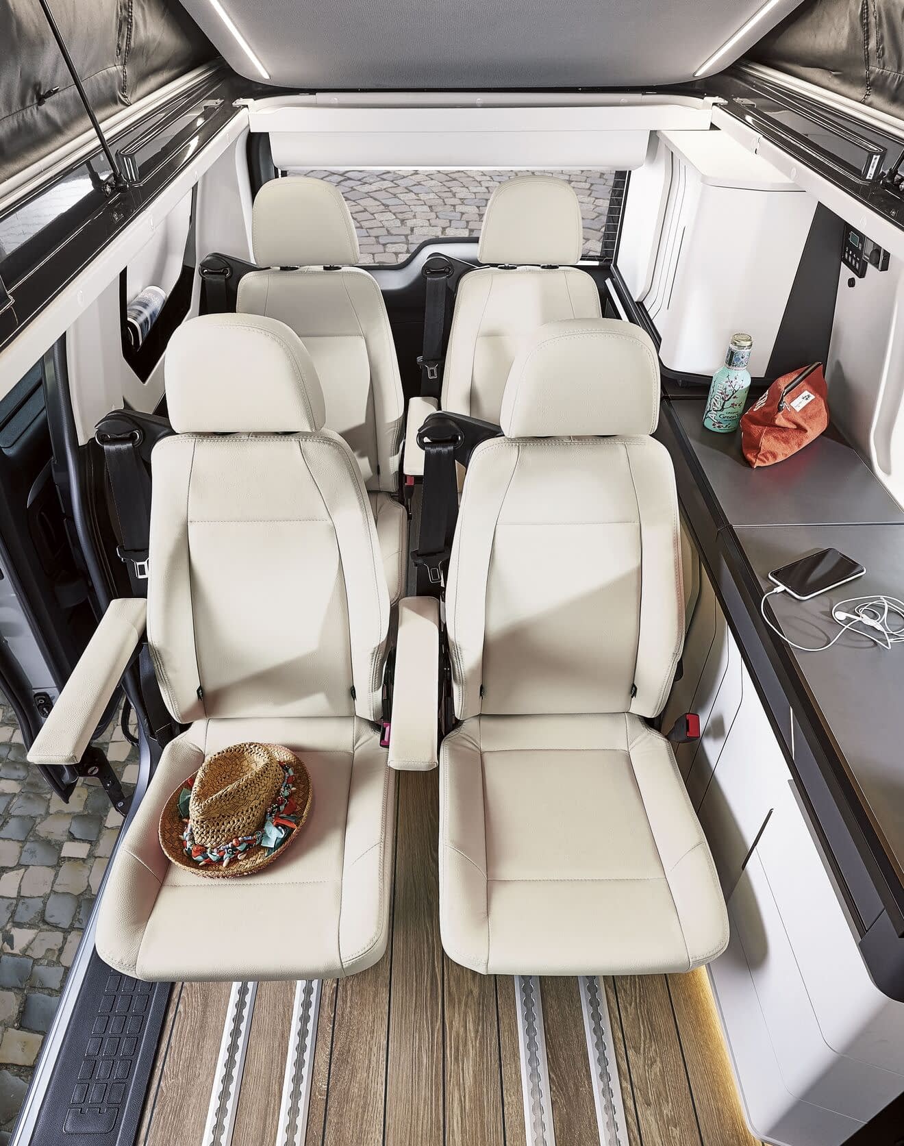 Ce modèle CapRoad de Campérêve a beaucoup de similitude avec le Volkswagen T6 California, avec des sièges individuels permettant une parfaite modularité et une manipulation simple et facile de l’intérieur.